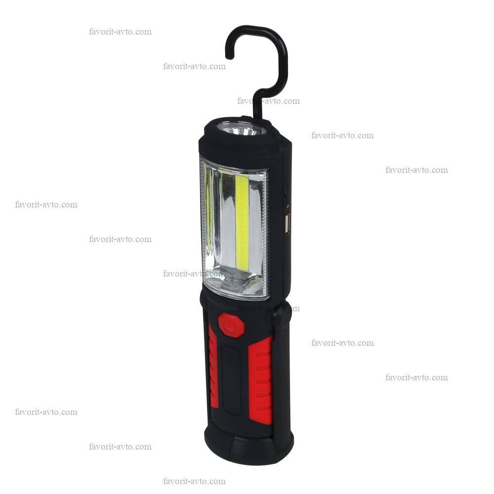 ЕРМАК Фонарь автомобильный светодиодный с магнитом и крюком, 1800мач, USB заряд