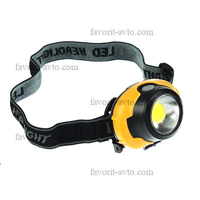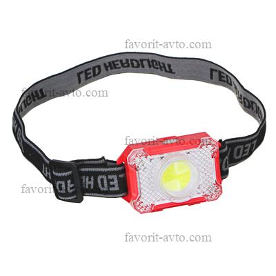 ЧИНГИСХАН Фонарик налобный, 1 COB, 3xAAA, 3 режима, пласти. 1/12