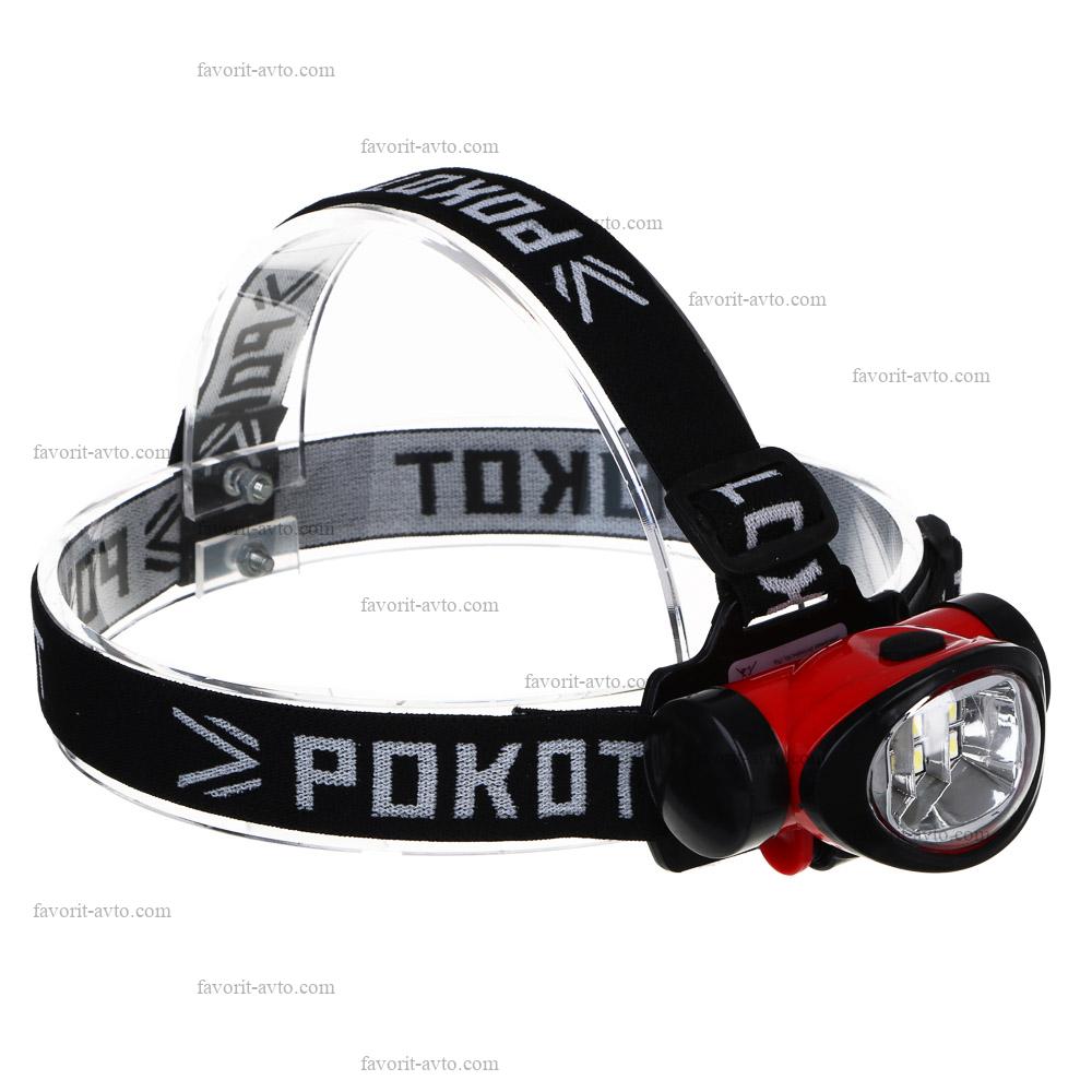 РОКОТ Фонарь налобный, 6 СОВ, 3 режима, 3хААА, 80х30х43 мм