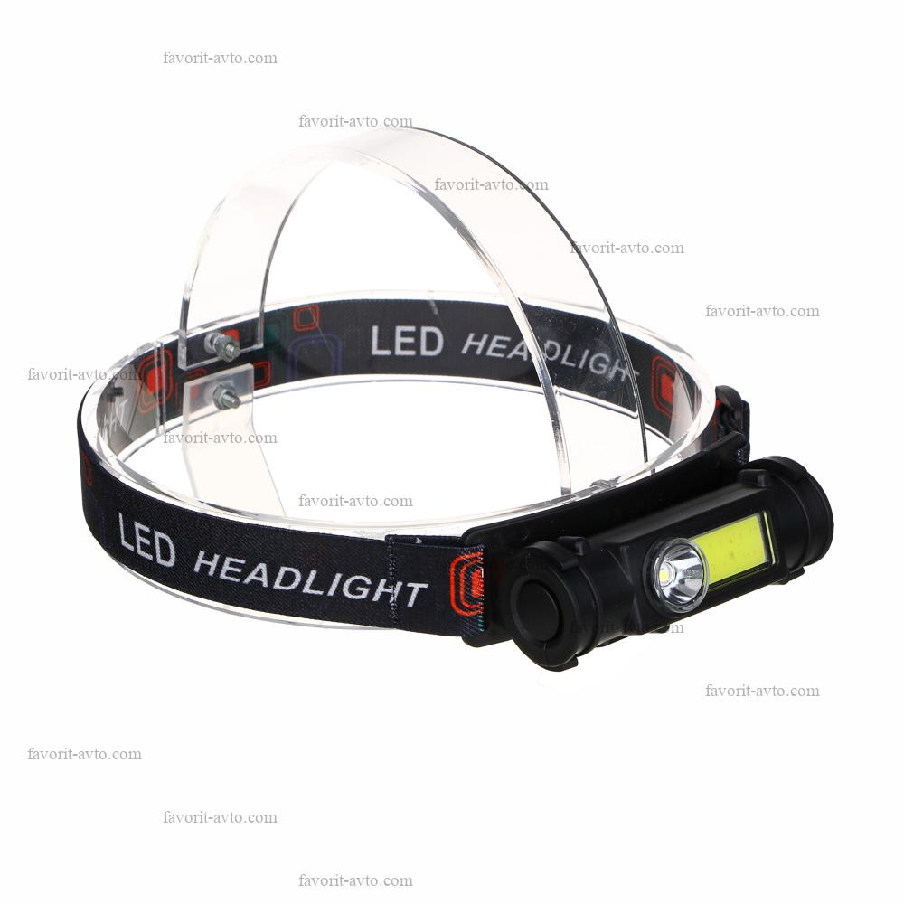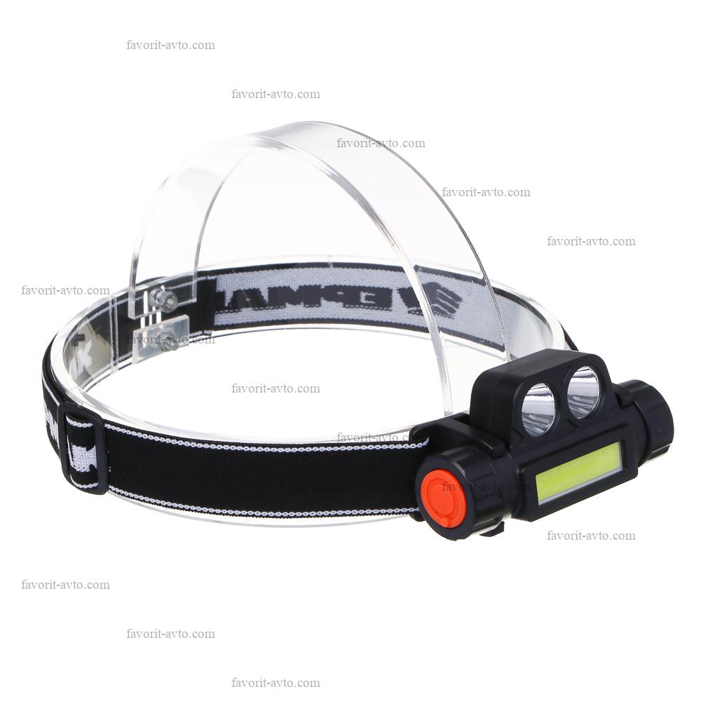 ЧИНГИСХАН Фонарик налобный, 1000мАч, 1 COB, 1 LED, 8х3 см, 2 режима, пластик. 1/12