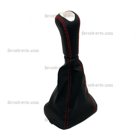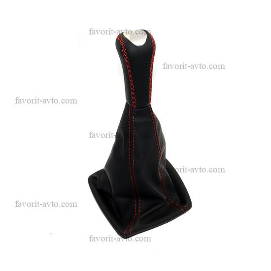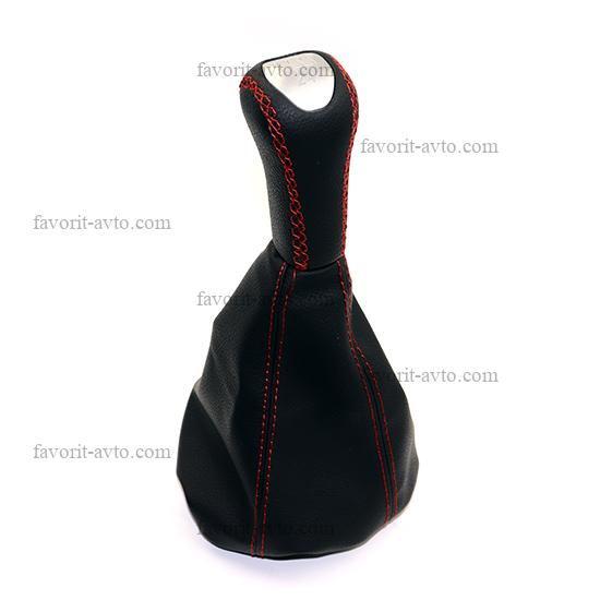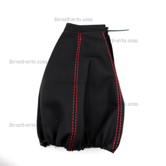 Ручка КПП с чехлом "ЛЮКС" ПРИОРА /ЧЁРНЫЙ+красная строчка/. Из износостойкой, автомобильной прессованной кожи. |
