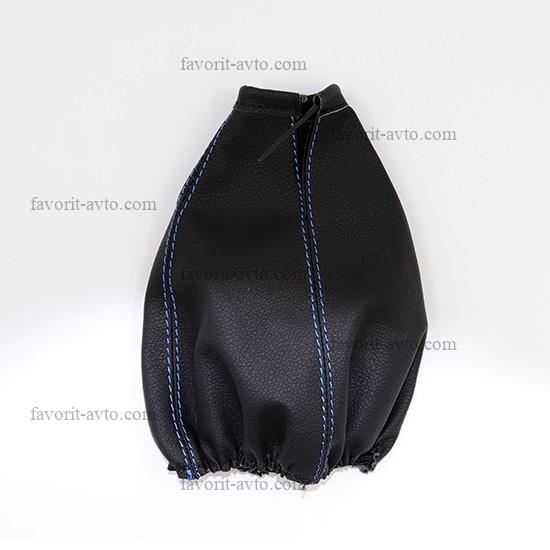 Ручка КПП с чехлом "ЛЮКС" ВАЗ 2115 /ЧЁРНЫЙ+синяя строчка/. Из износостойкой, автомобильной прессованной кожи. |