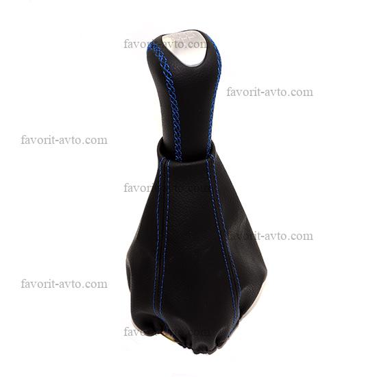Ручка КПП с чехлом "ЛЮКС" ПРИОРА /ЧЁРНЫЙ+синяя строчка/. Из износостойкой, автомобильной прессованной кожи. |