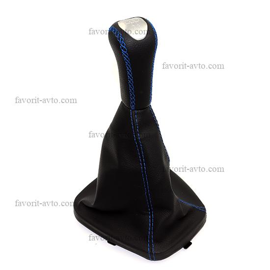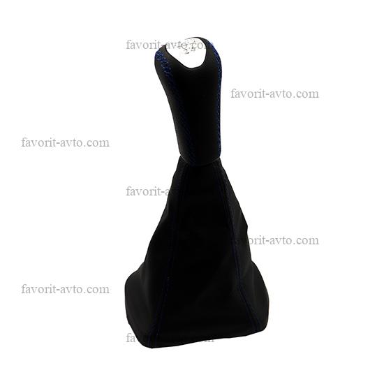 Ручка КПП с чехлом "ЛЮКС" ВАЗ 2110 /ЧЁРНЫЙ+синяя строчка/. Из износостойкой, автомобильной прессованной кожи. |