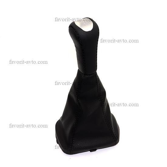 Ручка КПП с чехлом "ЛЮКС" ПРИОРА /ЧЁРНЫЙ+белая строчка/. Из износостойкой, автомобильной прессованной кожи. |