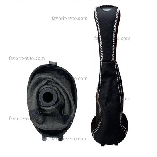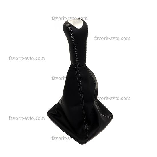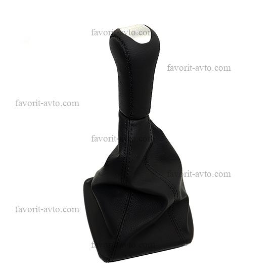 Ручка КПП с чехлом "ЛЮКС" ЛАРГУС /ЧЁРНЫЙ+белая строчка/. Из износостойкой, автомобильной прессованной кожи. |
