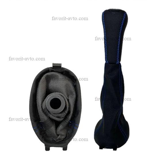 Ручка КПП с чехлом "ЛЮКС" ЛАРГУС /ЧЁРНЫЙ+синяя строчка/. Из износостойкой, автомобильной прессованной кожи. |