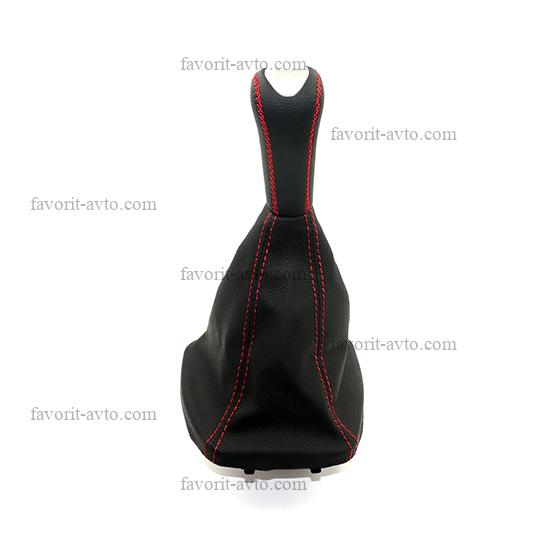 Ручка КПП с чехлом "КАЛИНА". Нат. Кожа. /ЧЁРНАЯ+красная нить/. 1/50 |