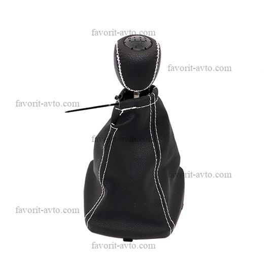 Ручка КПП с чехлом "КАЛИНА". Нат. Кожа. /ЧЁРНАЯ+белая нить/. 1/50 |