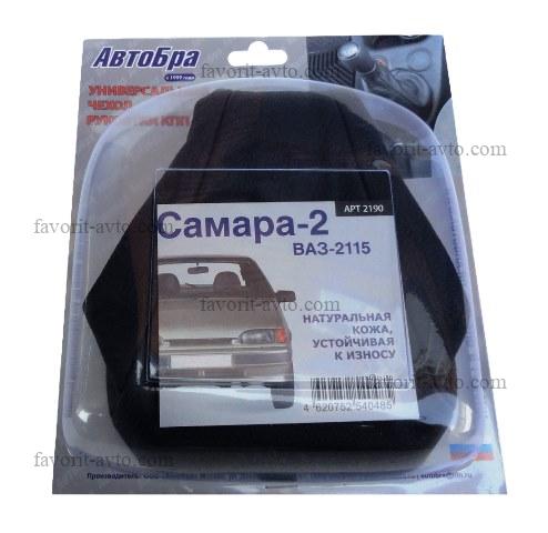 Чехол ручки КПП АВТОБРА ВАЗ-2113-15 /ЧЁРНЫЙ/ из натуральной мебельной кожи КРС. 2190. В блистере. |
