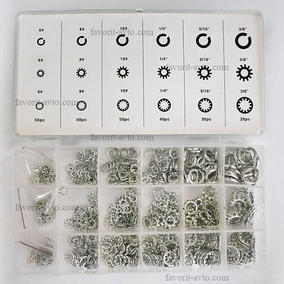 Набор шайб (18 видов: гровер, зубчатые, стопорные, многолапчатые, 720шт) (6025) |