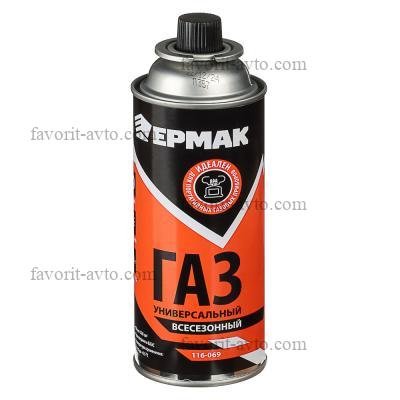 ЕРМАК Газ для портативных плит, всесезонный, метал. баллон 220гр, 520см3 (цанговый, ЕАЭС) |