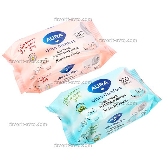 Туалетная бумага влажная AURA Ultra Comfort без крышки, 120шт |