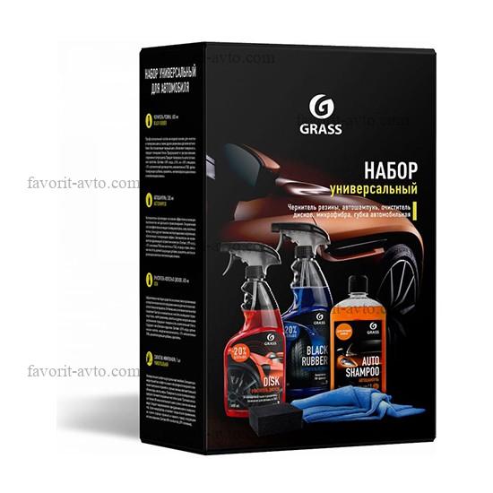 GraSS 196 Набор подарочный универсальный для автомобиля 2021-у (Чернитель резины, автошампунь, очиститель диско, микрофибра, губка). (Арт.-800628) |