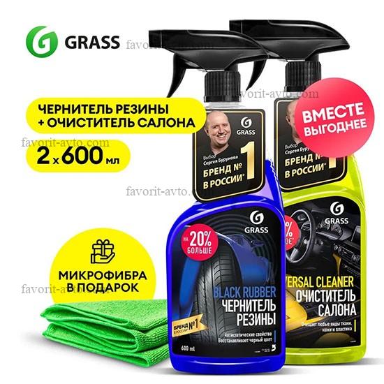 GraSS 284 Набор подарочный Black Rubber UNIVERSAL CLEANER (Чернитель резины, очиститель салона, микрофибра). уп-ка прозрачный пакет. |
