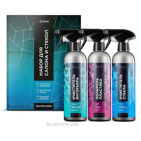 DETAIL 293 Набор подарочный для салона и стёкл ( Очиститель кожи, очиститель стекл, салфетка). уп-ка прозрачный пакет. |