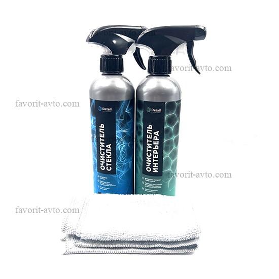 DETAIL 291 Набор подарочный для салона и стёкл ( Очиститель интерьера, очиститель стекл, салфетка). уп-ка прозрачный пакет. |