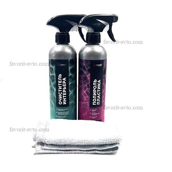 DETAIL 292 Набор подарочный для салона и стёкл ( Полироль пластика, очиститель стекл, салфетка). уп-ка прозрачный пакет. |
