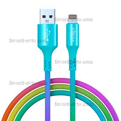 FORZA Кабель для зарядки Радуга iP, 1м, 2А, тканевая оплётка, пакет |