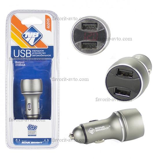 Зарядное устройство "Nova Bright" для моб.устройств, 2 USB-порта, 2100мА + цифровой LED вольтметр, 12/24В. 1/25/100 |