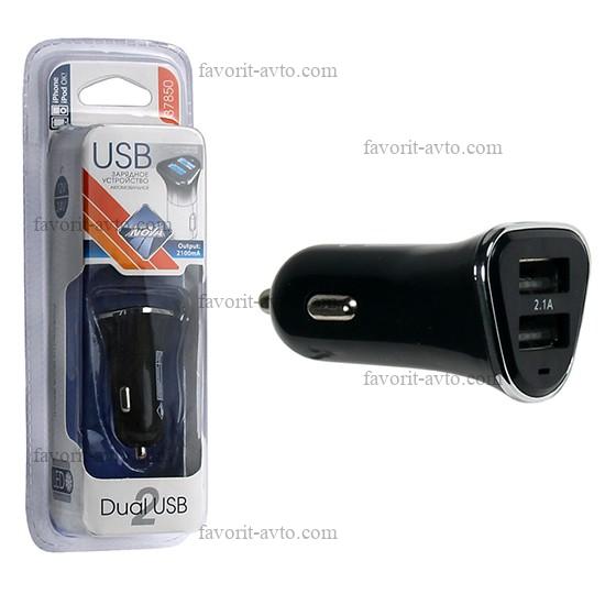 Зарядное устройство "Nova Bright" для моб.устройств, 2 USB-порта, 2100мА, LED индикатор, 12/24В. 1/25/200 |