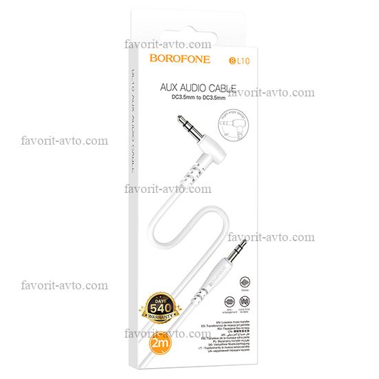 BOROFONE BL10 Аудиокабель AUX для подключения к автомагнитоле с разъемом 3.5Jacke угл, 2м белый |
