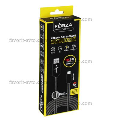 FORZA Кабель для зарядки Micro-USB, Армированный, с LED подсветкой, 1м, 2.4А, Быстрая зарядка QC3.0 |