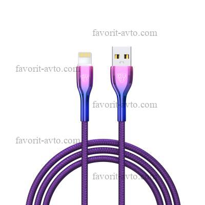 BY Кабель для зарядки Jam iP, 1м, Быстрая зарядка 2.4А, 12W, тканевый, фиолетовый |