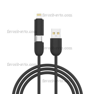 BY Кабель для зарядки Slim 2 в 1 iP/Type-C, 1м, Быстрая зарядка 3А, QC, PD 20W, силиконовый, плоский |