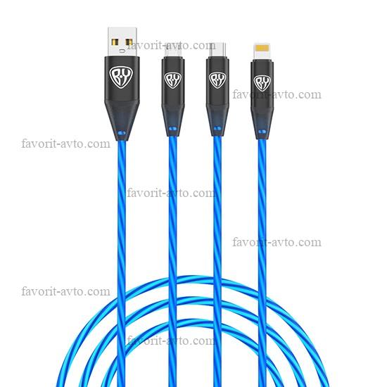 BY Кабель для зарядки 3 в 1 Светящийся, 150см, пакет |