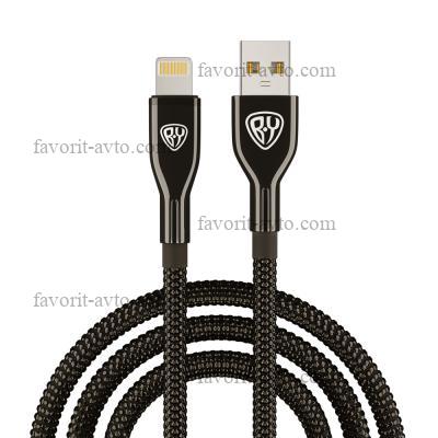 BY Кабель для зарядки Керамика iP, 1м, 2.4А, Быстрая зарядка, тканевая оплётка, черный |