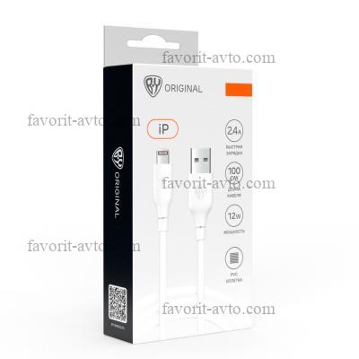 BY Кабель для зарядки Эко iP, 1м, Быстрая зарядка 2.4А, 12W, прорезиненный, белый |