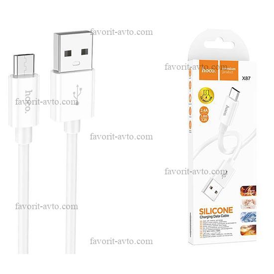 HOCO Кабель универ. micro USB /Android/ 1м, 2.4А, белый X87 |