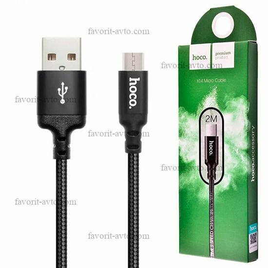 HOCO Кабель универ. micro USB /Android/ 2м, 2.4А, нейлоновая оплетка, черный X14 |