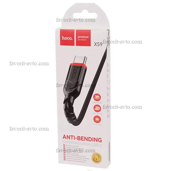 HOCO Кабель универ. USB Type-C 1м, 3А, нейоновая оплетка, черный X59 |