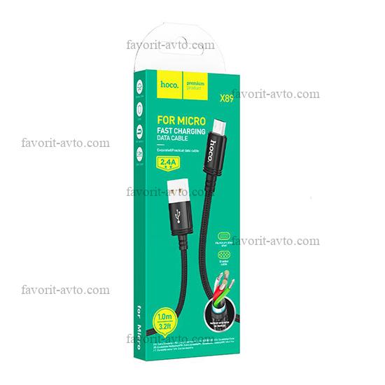 HOCO Кабель универ. micro USB /Android/ 1м, 2.4А, нейлоновая оплетка, черный X89 |