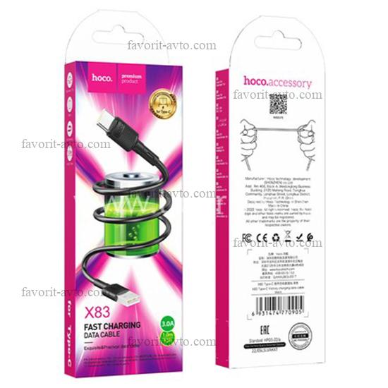 HOCO Кабель универ. USB Type-C 1м, 3А, черный X82 |