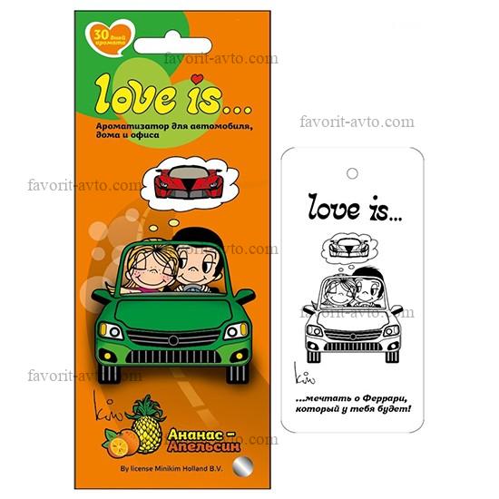 Ароматизатор подвесной картон "LOVE IS..." Ананас-Апельсин. 1/22. Арт. LI K 0004. |