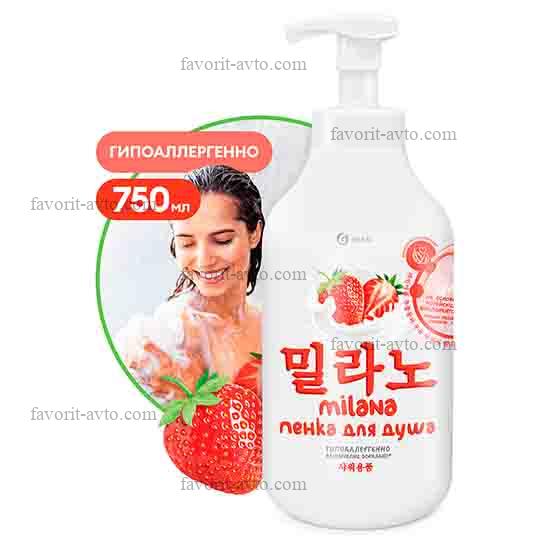 GraSS 414 Пенка для душа с экстрактом клубники и молочными протеинами "Milana" (флакон 750мл.). Арт. 125464 |