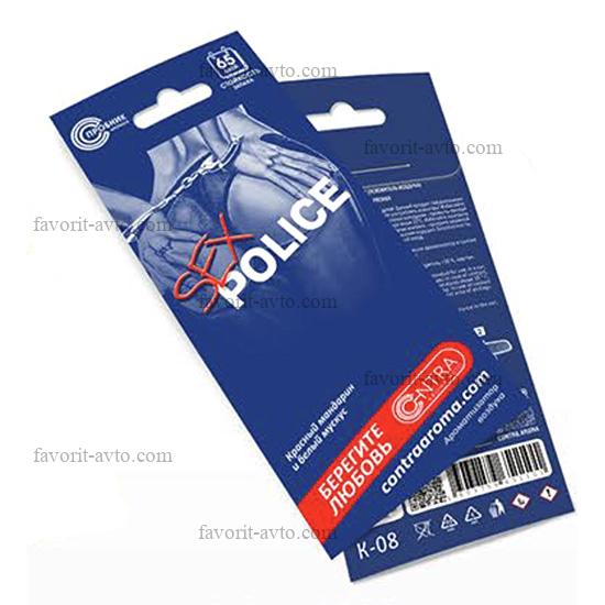 CONTRA К-08 Ароматизатор подвесной картон "SEX POLICE" (Красный мандарин и белый мускус). |