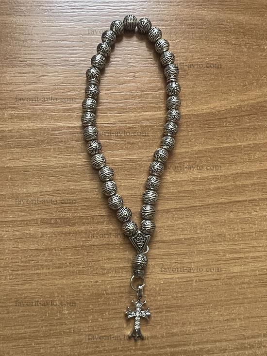 Подвеска на зеркало заднего вида, КРЕСТ камешки с дырочками (ПЛАТИНУМ+СЕРЕБРО), четки (черные) |