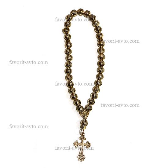 В пути! Подвеска на зеркало заднего вида, КРЕСТ камешки с дырочками (ЗОЛОТО+СЕРЕБРО), четки (черные) |