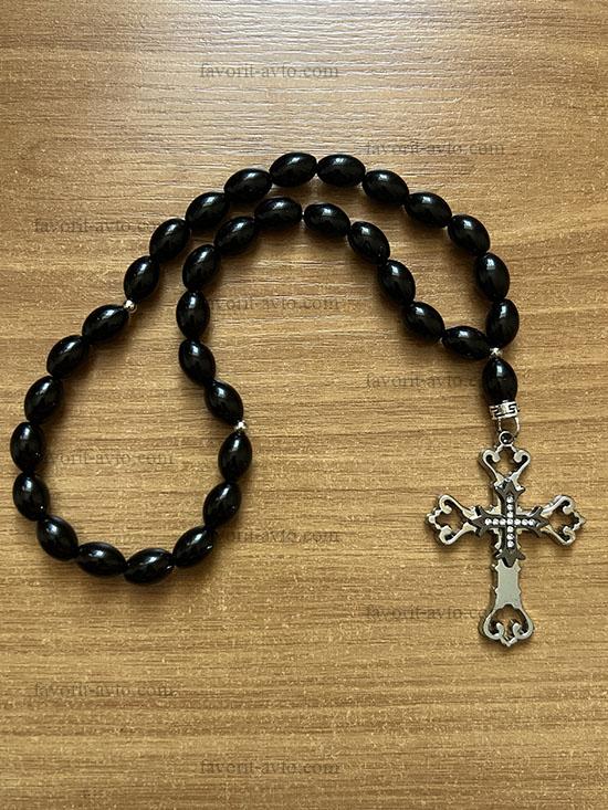 Подвеска на зеркало заднего вида, КРЕСТ крупный (ЧЕРНЫЙ), четки (черные) |