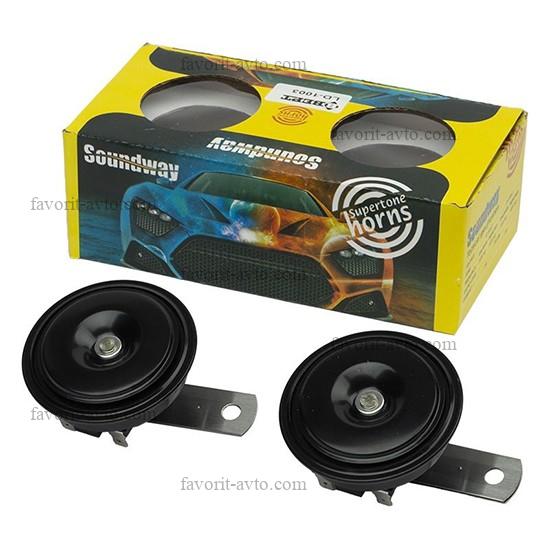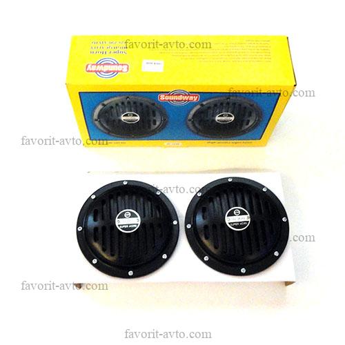 Сигнал звуковой электрический AutoHORN W-1046 Диск 12V /ЧЁРНЫЙ/ d-15 см. Комп. 2 шт. 1/8 |