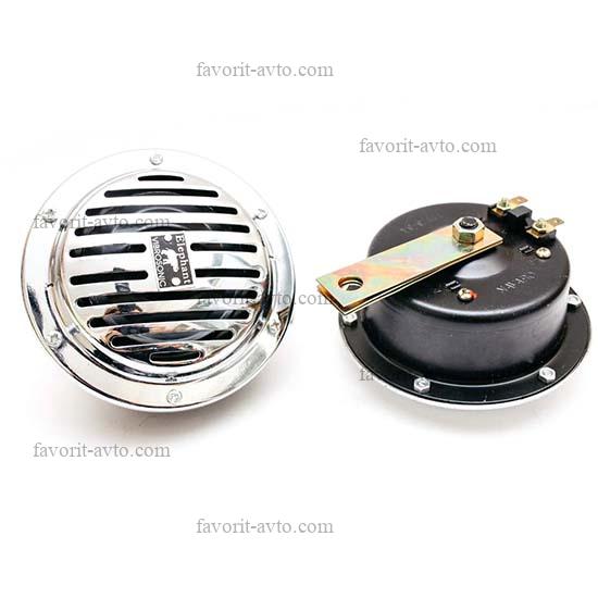 Сигнал звуковой электрический AutoHORN W-1038 Диск 120 мм /ХРОМ/ 12V. Комп. 2 шт. 1/20 |