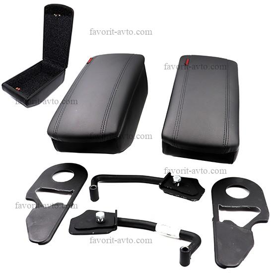 БОКС199-подлокотник на железной ножке НИВА 2121, 21213, 21214, 2131, 2х120 мм. лев.+прав. /Кож. зам ЧЁРНЫЙ/. Пр-во Аламар. (в коробке - 1 комплект) |