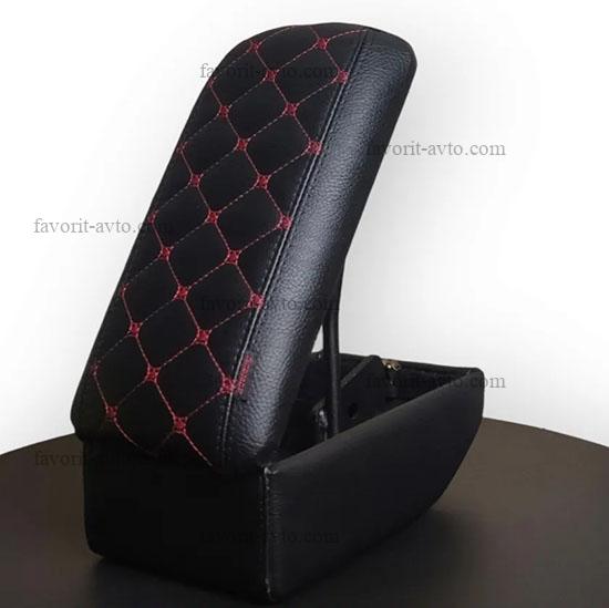 БОКС213 - подлокотник на железной ножке ЛАДА ГРАНТА 2190, 2191, Датсун ON-DO, Датсун Mi-Do /Кож. зам. /ЧЁРНЫЙ+красный РОМБ/. Пр-во Аламар. 1/1 |
