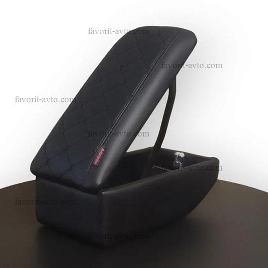 БОКС215-подлокотник на железной ножке Хендай СОЛЯРИС (Киа Рио) /Кож. зам. /ЧЁРНЫЙ+чёрный РОМБ/,. Пр-во Аламар. 1/1 |