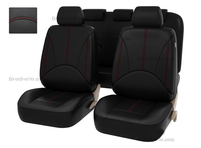 Авточехлы на сиденья 9пр., черные+красная нитка М5, Classic series. 1/10 |