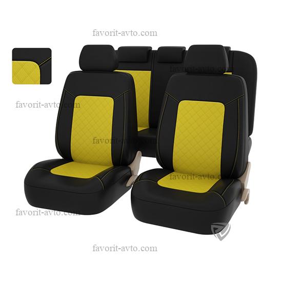 Чехлы №89 PSV Elegant Next (Черный-Желтый), ромб + экокожа. 1/5 |